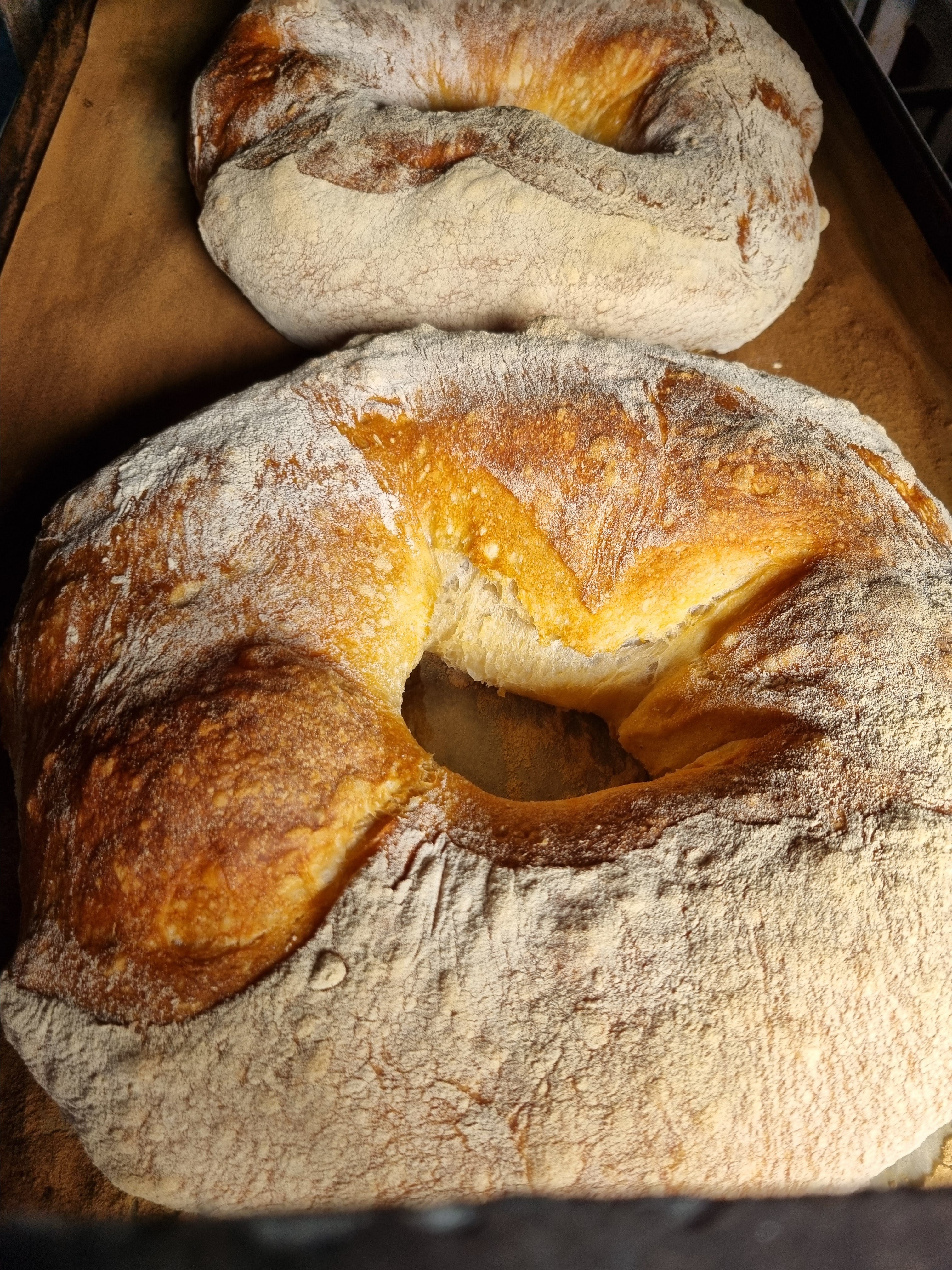 ‘‘We wanted to produce an affordable loaf and we experimented incorporating semolina. We use it for dusting the bread on the bottom of the oven, and it goes to a pig farmer. He's a good farmer, not organic, but he does good stuff. The bakery waste all goes to him. And we thought, look, we're throwing this away. Can we try it? And we tried with various percentages. So for every kilo of flour we put 600 grams of semolina in it. So it's costing us nothing. I know one would say you should charge a bit extra for it, but we wanted to produce this loaf to be under £3. It's had to go up a little bit now because we've been doing it for 12 months, 18 months.