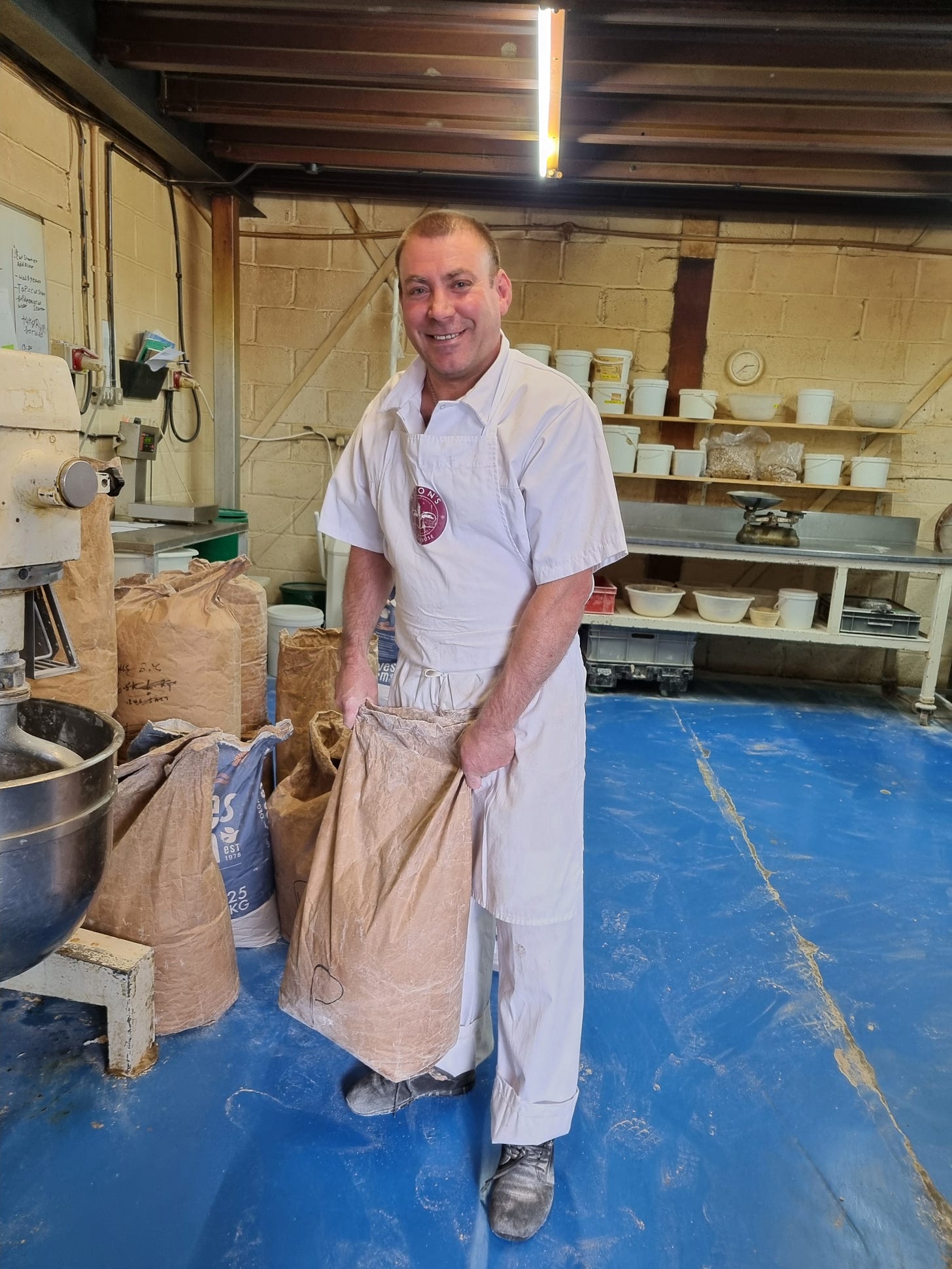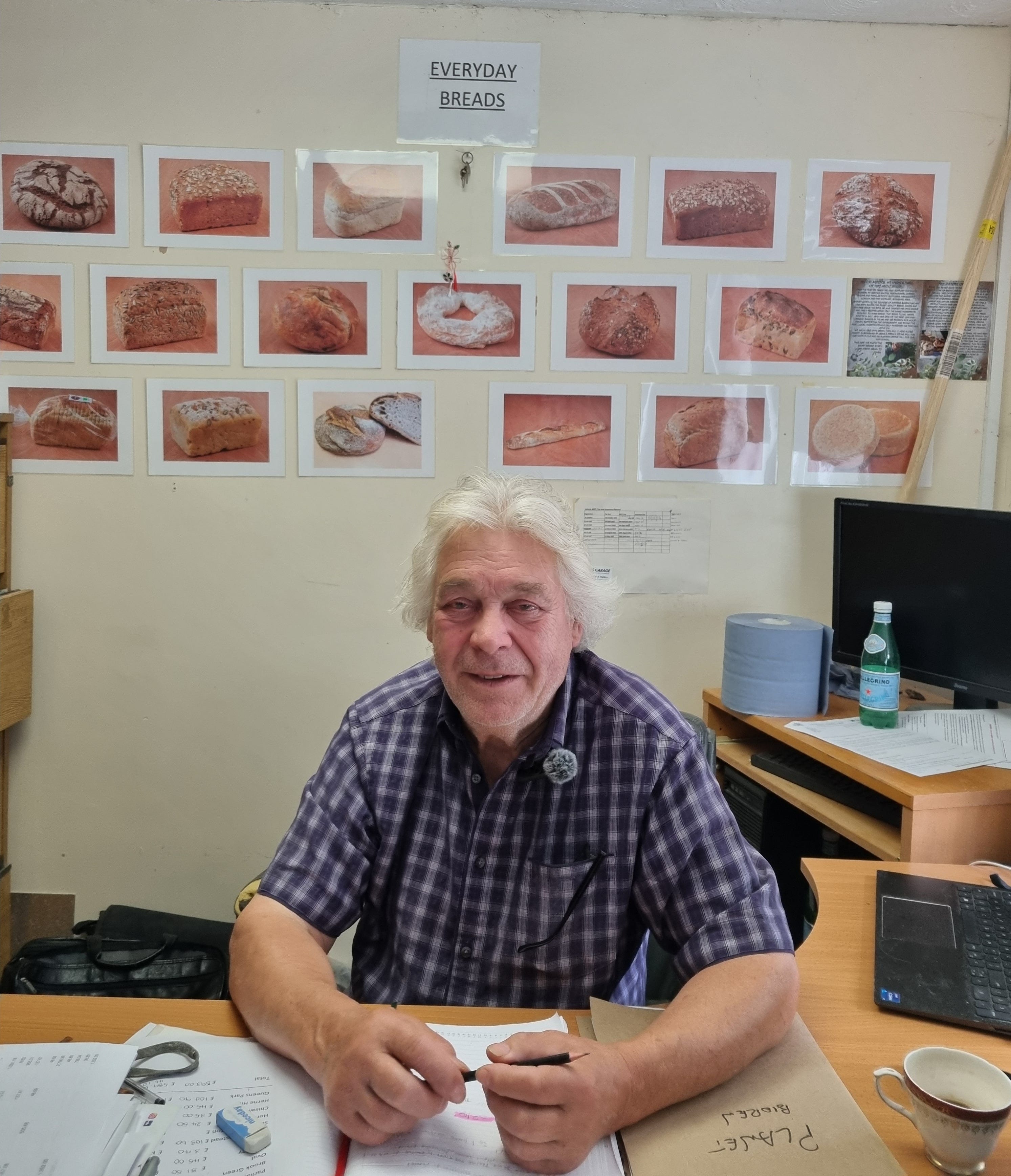 ‘‘That's quite easy, really. Normal high street bakers, very few of them bake from scratch. Because we're organic, we have to bake from scratch. You don't have premixes. Iulian downstairs, for a couple of months he went to work for a bakery in Reading, who's got about five or six shops. And nearly everything come out of a bag. You just added water, all the wet stuff, from doughnuts through to the bread.