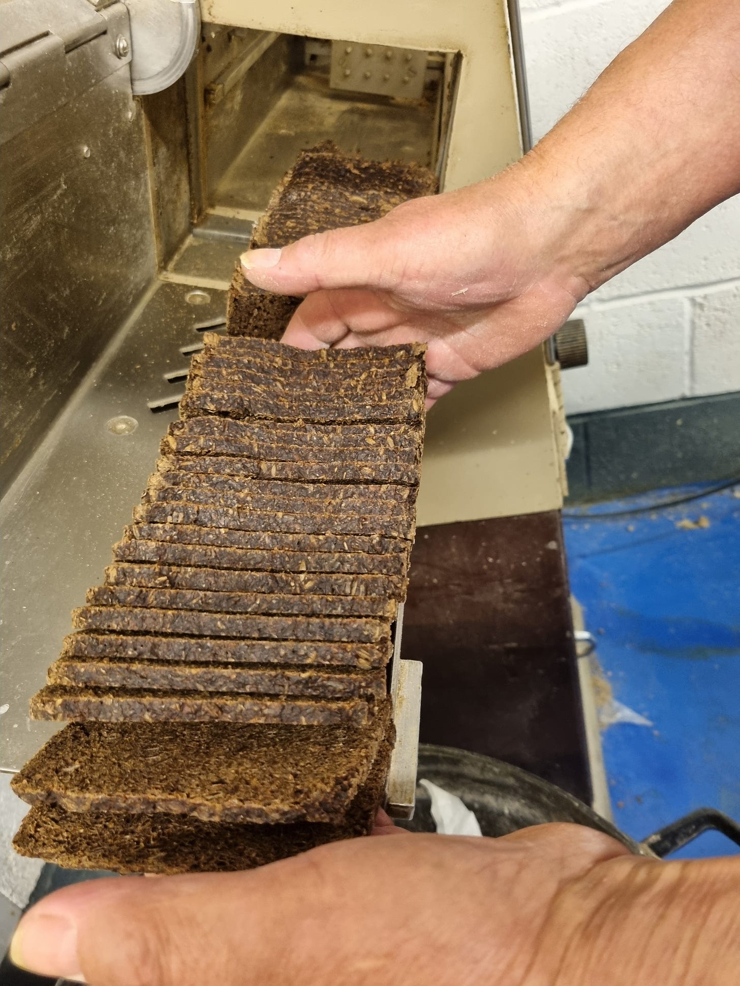 ‘‘They came down with the recipe, and there was 1% sunflower in the loaf, or 1.5%, something silly like that, plus the topping. A maximum of 3% of seeds. Whenever we make a loaf with any added ingredients, we're always working between 10% and 12%. Like you do a sunflower loaf, you put about 10%. They were cutting costs because the original Cranks, I've got some of the old books, they're all falling apart. They had a proper amount of seeds in it.